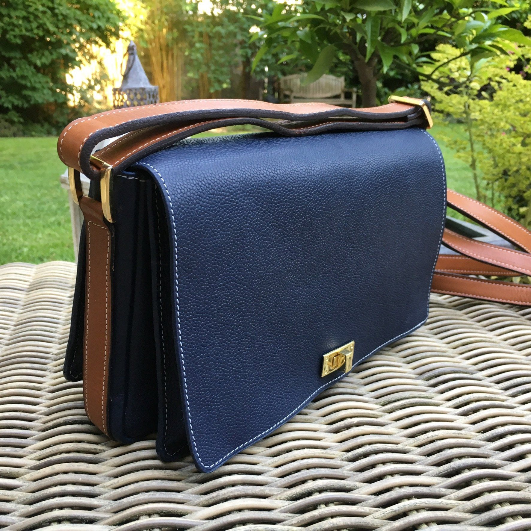 sac en bandoulière cuir, doublé cuir ou tissu. 3 compartiments.